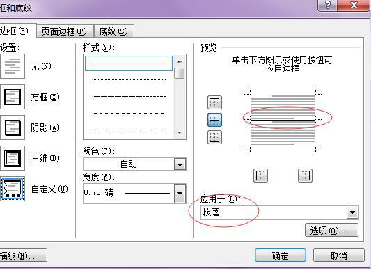 3. 在弹出的对话框中选择"边框和底纹"选项卡,在线性色色板中选择喜欢的线条样式。