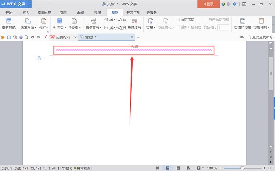 4. 点击确定按钮,返回到编辑界面。此时可以看到,在页眉区域已经成功插入了横线。