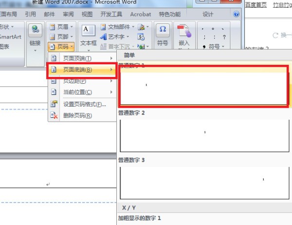 5、然后对第二页执行插入页码命令,且插入到页面底端右侧。