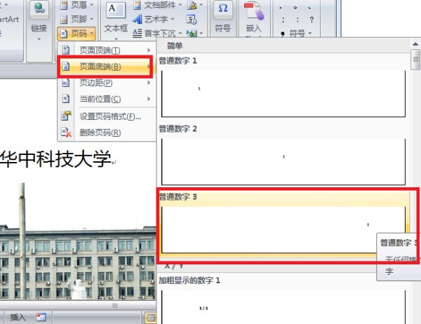 3、然后在出现的窗口中,对第一页进行操作,选树挥的使局大者洲燃择将页码插入到页面底端左侧。