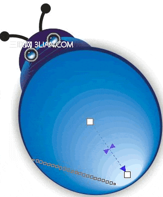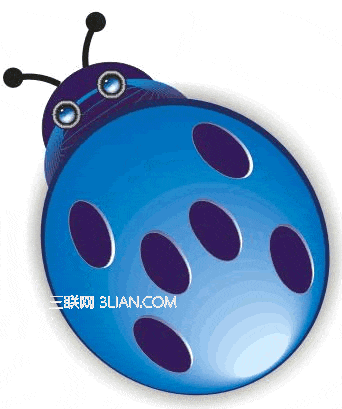 画椭圆由浅蓝色到白色过渡,在上面绘制深蓝色,接着制作出和前一步略小的椭圆,填充为蛋黄色在画一个再小的椭圆填充为浅黄色,交互式的方法进行渲染再绘制出一个椭圆为盔甲的发光区使用路径工具变形就是了,群组后打歪到合适位置,复制多个摆放到虫虫的盔甲上,复制若干,整齐放置。只脚的绘制跟胡须差不多。[任何人不得出版,刊登,模仿以下教程牟利,龙腾工作室对其有最踪起诉权]