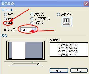 剧段点击“视图”→“显示比例”,在出现的对话框中,选择75%,或者自定义更小的显示比例: