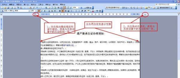 ②选中页面右侧显示不全的文字,向左拖动右缩进,使其与页面设置中的页边距相一致;设置完成后,效果如下: