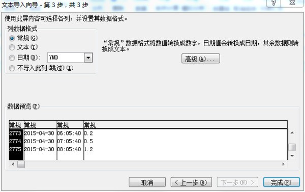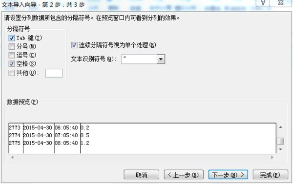 选择有效的分割符合,比如空格、Tab键等,下面的数据预览扒晌窗口可以姿简看到效果