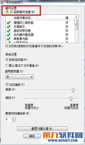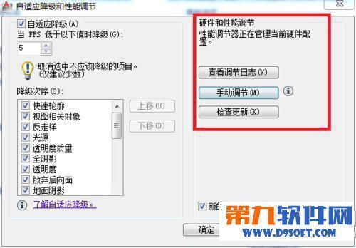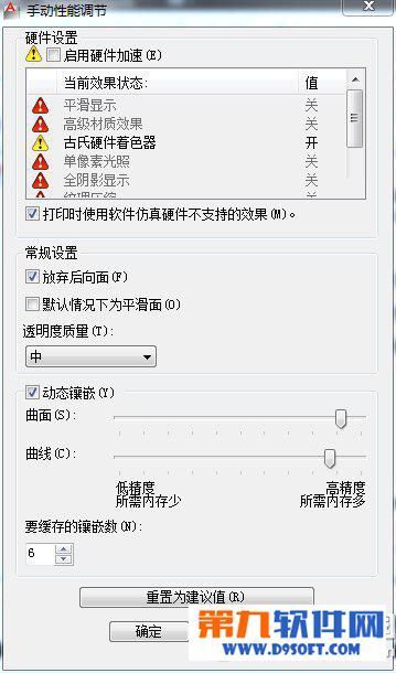 cad2012运行很卡解决方法4、点击上图红框中的“手动调节”,打开“手动性能调节”窗口,如下图360问答所示: