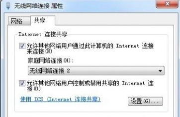 接着启用“Internet连接共享(ICS)”。打开“网络连接”窗口,右键单击已连接到Internet的网络连接,选择“属性”,找到“共享”这个选项,选中其中的复选框,并选择允许其共享Internet的网络连接;