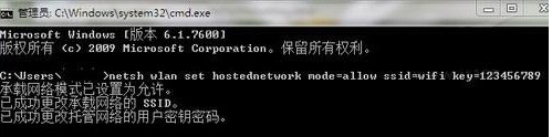 windows7无线wifi设置必须要启动“虚拟Wifi网卡”模式。在打开的命令符号符窗口中输入以下命令:netsh wlan set hostednetwork mode=allow ssid=(无线网络名称) key=(密码);