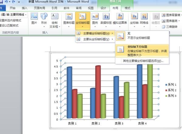 1、首先,我们打开要编辑的Word文档,单击图标,然后在布局中打开“轴标题”。