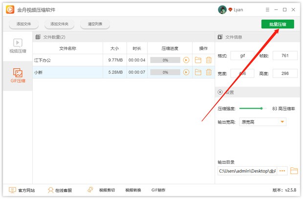三、接着,在软件右侧的设置中选择压缩强度,绿色进度条越长GIF图片压缩得越小;
