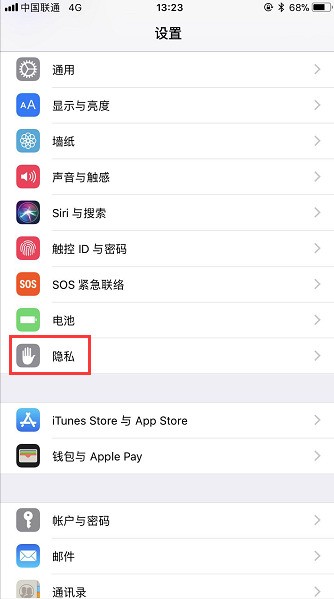 二、然后在手机的设置界面打开“隐私”进入,如图。