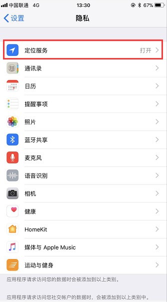三、进入隐私界面以后,选择“定位服务”选项,如图。