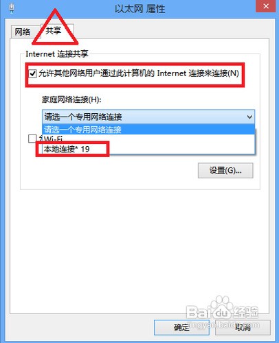 在以太网的网络连接上单击右键--属性,找到“共享”,选择虚拟出的网络,如下图所示,此时我们的wifi热点才算正式的建立了。