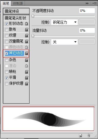 3. 在画笔面板里找到其他动态,把前面的勾去掉,或者把不透明度抖动设成关闭就OK了!