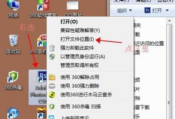 5、在桌面上打到PS图标,右击——打开文件位置,如图: