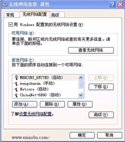 从首选网络中点击自动的无线网络,如上图的,mercury_6fc7eo(自动),再点击属性,弹出属性窗口,“当此网络在区域内时连接”,不要选择。具体如下图: