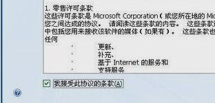 4、阅读 Microsoft 软件许可证条款,选“我接受此协议的条款”,点击“继续”。
