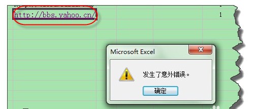 1.打开Excel点击超链接,总是不成功,提示“发生了意外错误”警告。