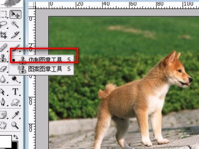 4、在PS的左边工具箱中,选择仿制图章工具,选取绘制的参考点
