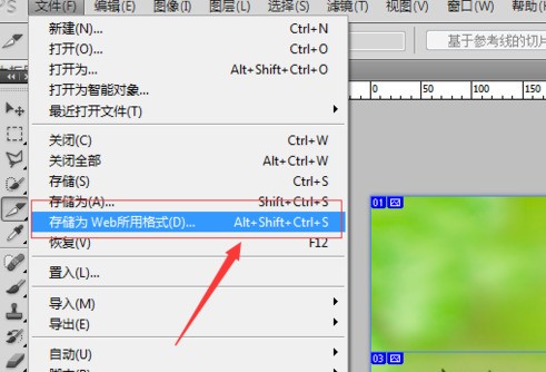 3.切好片后,进行保存:选择 【文件】—【存储为web所用格式】,如下图所示: