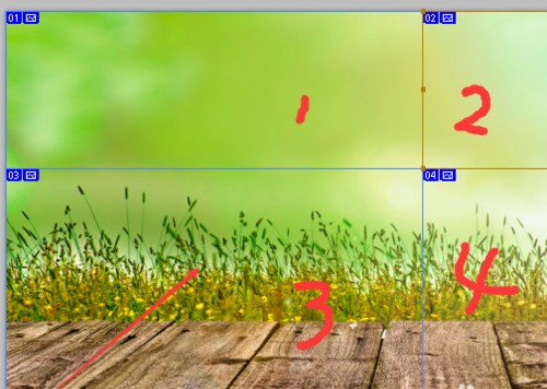 2.选择切片工具后,进行逐一切片,如下图所示,选择切成四块。