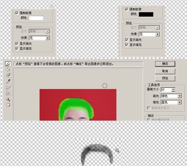 滤镜/抽出/选择强制前景/用取色器取黑色/再用边缘高光器进行涂抹需要的部分,最后确定即可。