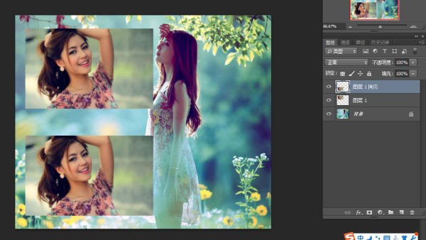 1)打开两张图片,将其中一张拖进来,复制图层;