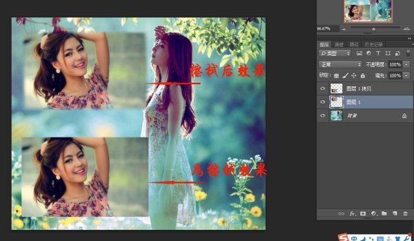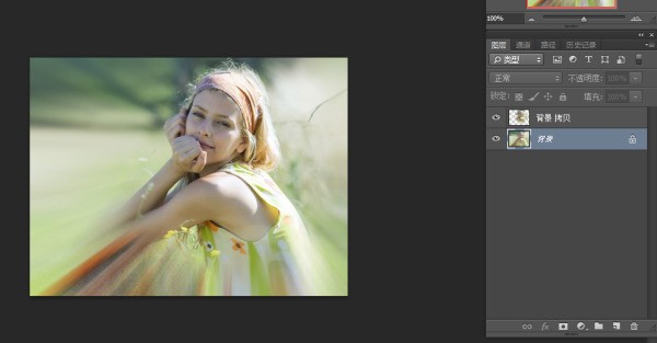 3)打开背景图层,滤镜--模糊--径向模糊,保存,达到美图效果。