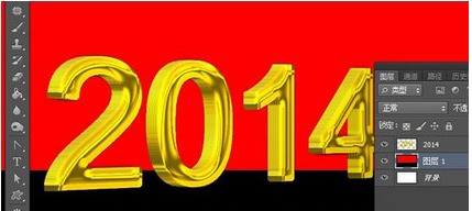 13、现在制作一个背景,先新建一个图层,放在文字图层下边,填充成红色,然后使用“矩形工具”选择下面一部分填充成黑色,效果如下图所示: