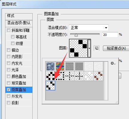 然后使用到想要用到的背景中去就可以了。点击背景图层-混合选项-图案叠加-选择图案-调整下不透明度,即可