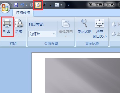 四、进入PPT文档内,点击“打印预览”按钮,然后点击“打印”。