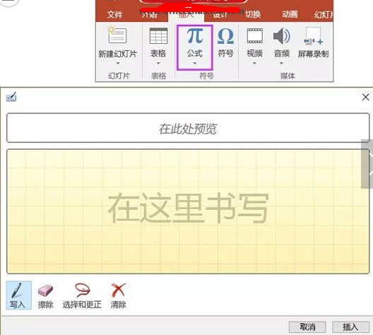 插入>公式>墨迹公式,可以输入任何复杂的数学公式。如果有一个触摸设备,可以使用手指或触摸手写笔手写数学方程,PowerPoint 会将其转换为文本。