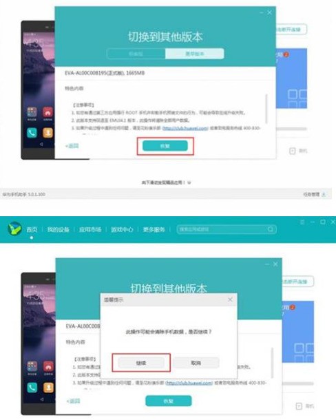 6. 找到后点恢复,确认你数据都备好了,弹窗出来就点继续。