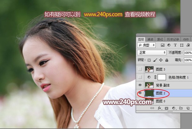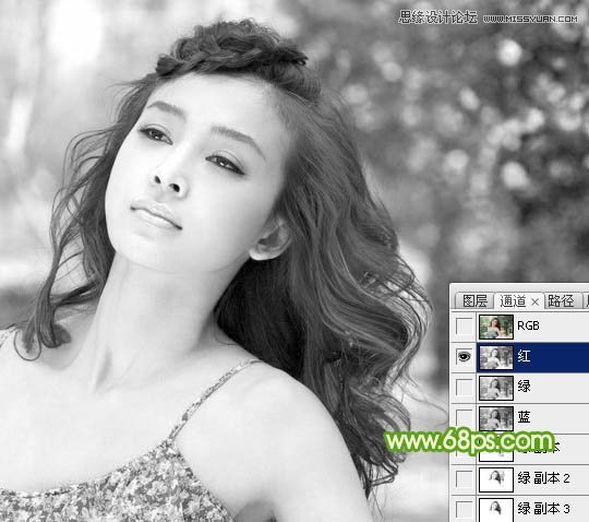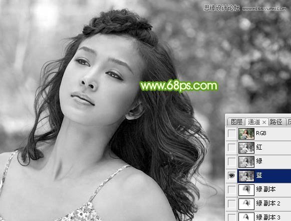 1、打开素材图片,进入通道面板,先观察三个通道,如果1 - 3,找出发丝与背景色差比较理想的通道,这里绿色通道比较好。