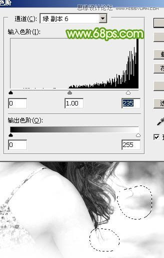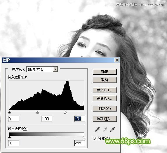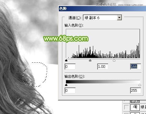 3、先来把整体调亮一点,按Ctrl + L 调整色阶,调后面的高光滑块,边调边看发丝的变化,细节开始丢失时就不要再调了,如下图。
