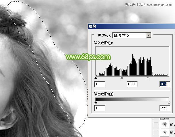 11、第三段比较难处理。先用套索工具选取这一部分,羽化3个像素后按Ctrl + L 用色阶调亮一点。