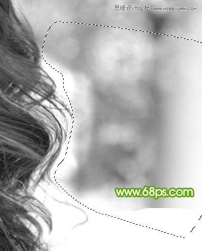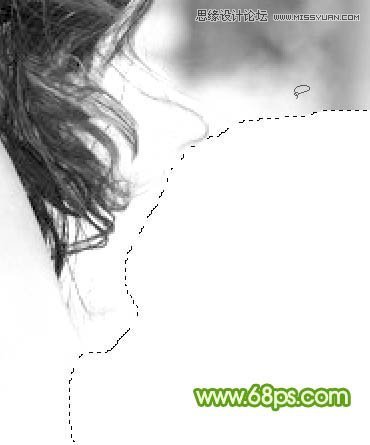 7、第一段基本完成,用套索把发丝外部区域选取出来填充白色。