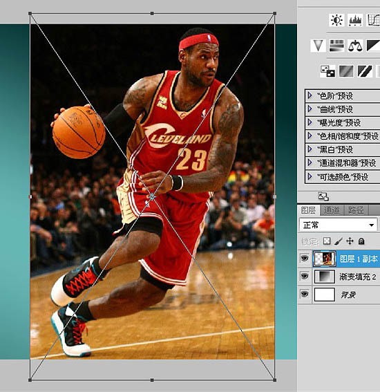 三、置入一张LeBron James带球过人的图片,调整一下大小及位置。