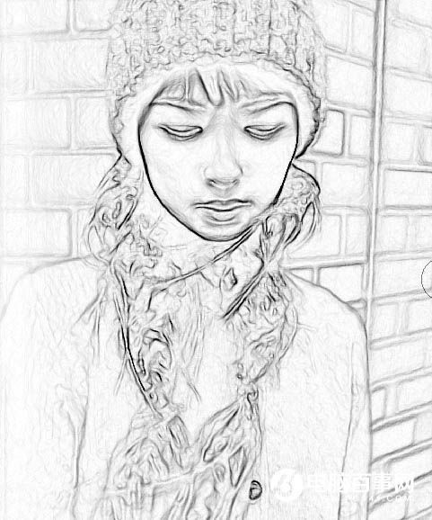 十四、最后,把画笔适当调小,用完全不透明的白色,在蒙板上涂鸦最有特色的地方,为这幅素描带来一些有感觉的黑色笔触。