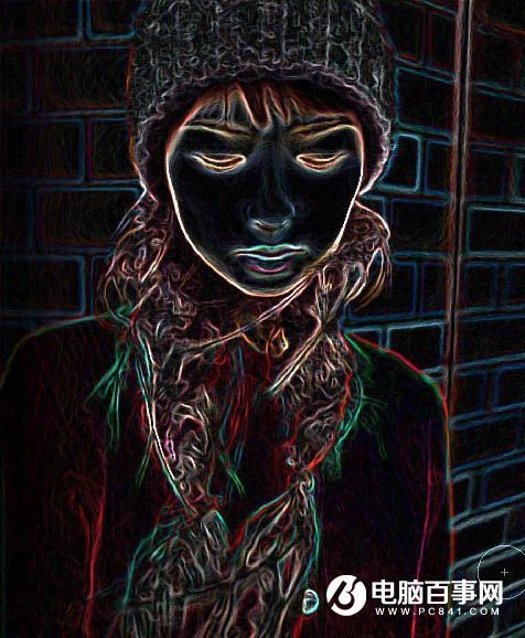 三、双击背景层取消锁定,选择复制图层,将复制层命名“照亮边缘”,将这个这个新层拖动到顶端(Ctrl + Shift + ] ),点菜单“滤镜>风格化>照亮边缘,使用这些值:边缘宽度3,边缘亮度11,平滑度10(个人觉得调节参数是为了加深轮廓线)。