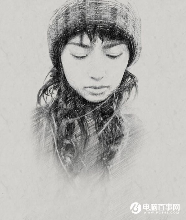 十二、使用大量的交叉排线重叠地画。请注意,这里不需要实际的素描技巧,我们涂抹只是为了显示蒙板下的图像。