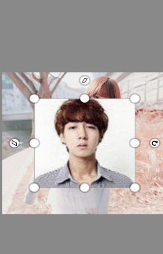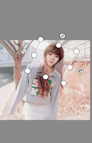 6、通过上排工具栏里器胶错儿台称变换调整脸的大小以及位置,可以通过右侧的小旋钮一样的小工具改变脸的倾斜角度。