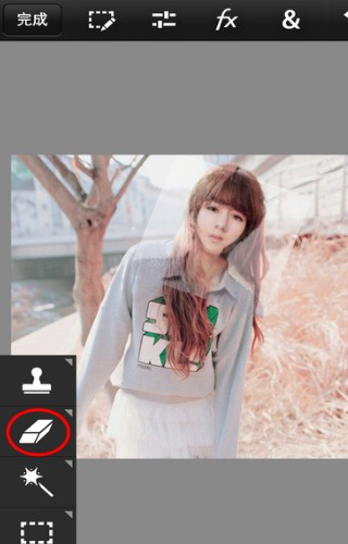 7、接下来,我们需要用到皮擦。在左侧工具栏里找到皮擦工具。如果皮擦的位置不是皮擦,可以按住不动,会在右侧出来皮擦,手按住移到皮擦的位置就可以选择皮擦了。