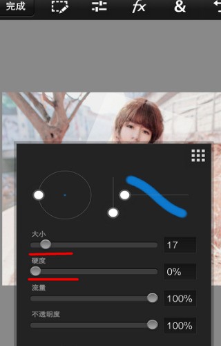8、点开画笔,将硬度调小。注意画笔的大小,使用皮擦时,细节以及边缘位置画笔大小最好调小。防止误擦不需要擦除的地方。