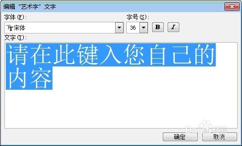 4.这时又会弹出一个窗口出来,如下图所示。将“请在此键入您自己的内容”用backspace键删除,然后输入你自己的内容。