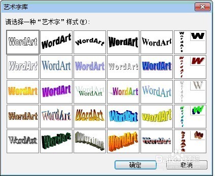 3.这时会自动弹出一个窗口出来。如下图所示,选择你想要的一中艺术字样式。单击“确定”。