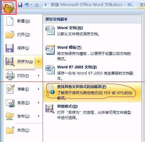 05安装完成后重新启动计算机,再打打开word另存为就发现有”另存为pdf或xps加载项“了。
