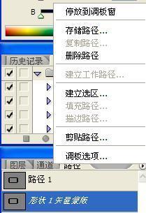 1.选中形状图层路径,切到“路径”调板,然后选择“存储路径”
