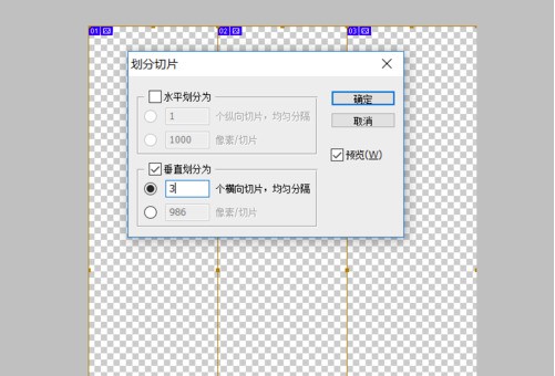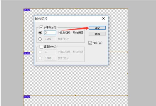 7、在打开的划分切片对话框,也可以勾选纵向切,切成几分。然后在ps直接可以看到效果,如下图所示。