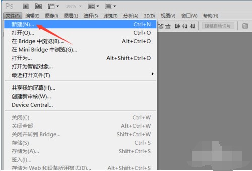 1、打开Photoshop应用软件,点击导航栏上的【文件】-->新建,如下图所示。