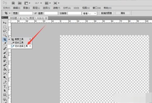 3、在点击ps左侧导航上切片组图标,然后点击下面的【切片工具或者切片选择工具】,如下图所示。